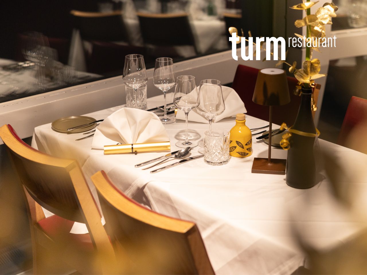Silvester Galamenü im Turm Restaurant: Preis pro Person für einen Tisch mit 2 Erwachsenen.