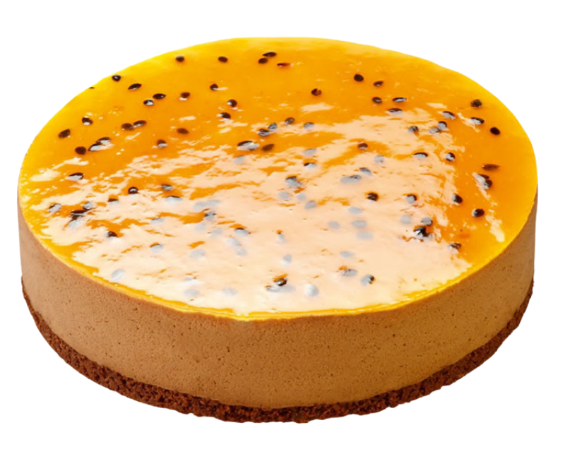 - Maracujamousse und Schokomousse auf dunklem Biskuit, mit Maracujaglasur