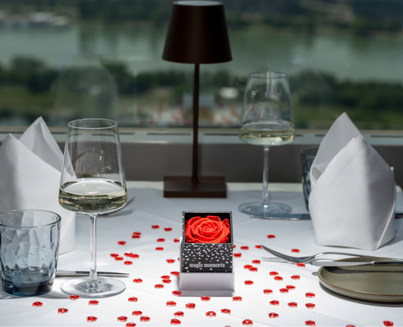 - Reservieren Sie bitte zuerst einen Tisch im Turm Restaurant. Ein Romantikpaket kann erst nach erfolgreicher Tischreservierung bestellt werden.